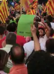 At the stage set up at the end of the march, the organisers, the Catalan National Assembly, asked those present several questions. Green cards had been printed in various publications prior to the demonstration and people were asked to bring them along, and to hold them up to vote "yes" to these questions. Cards were also handed out at the event. The aim was to get a photograph with a sea of green voting papers in support of Catalan independence.