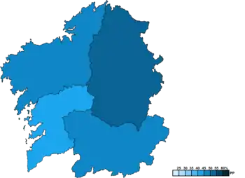 ![]() Constituency results map for the Parliament of Galicia | ||||||||||||||||||||||||||||||||||||||||||||||||||||||||||||||||||||||||||||||||||