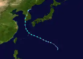 The storm killed at least one person in South Korea, while in North Korea, state-run media reported that at least seven people were killed in Kangwon Province, with an eighth fatality reported elsewhere. It said the storm caused significant damage, destroying 650 dwelling houses, 30 public buildings, railways, roads, bridges, and various systems. The flooding also inundated nearly 3,870 homes, leaving more than 16,250 people homeless.[43]