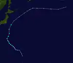Early on February 17, the JMA reported that a tropical depression had developed, about 800 km (495 mi) to the southeast of Manila on the Philippine island of Luzon.[10] During that day the depression moved westwards, before the Joint Typhoon Warning Center initiated advisories at 1500 UTC and designated the system as Tropical Depression 01W.[11] However, six hours later the JTWC issued its final advisory as vertical windshear had started to increase, and after it had found no deep convection near the systems low level circulation centre during a reassessment of the depressions low level structure.[12] Over the next few days the JMA continued to monitor the depression before it was last noted during February 20.[13]