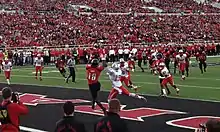 The Red Raiders set a school record for total yards allowed in a game, with only 86 being given up to the Demons.[16] Eric Stephens scored a pair of first-half touchdowns and Kenny Williams scored on pass from Seth Doege as the Raiders opened a 24–3 halftime lead. Doege left the game before the end of the third quarter, and his replacement, Michael Brewer, threw a pair of fourth-quarter touchdowns to Marcus Kennard as Texas Tech completed the season-opening rout.[3]