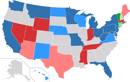 ![]() Results of the elections: Democratic gain Republican gain Independent gain Democratic hold Republican hold Independent hold No election | |||||||||||||||||||||||||||||||||||||||||||||||||||||||||||||||||||||||
