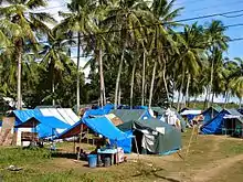 Japan delivered emergency relief goods (150 tents and 485 plastic sheets) worth approximately $383,000 for the victims,[55] and later decided to extend additional assistance of $3.5 million through the International Organization for Migration (IOM), the International Federation of Red Cross and Red Crescent Societies (IFRC), United Nations Children's Fund (UNICEF), and United Nations Development Programme (UNDP).[56] The government of Taiwan has provided funds worth $100,000.[21] Malaysia donated RM100,000 for the children affected by the disaster.[57] The United States, through the US Agency for International Development (USAID), donated $50,000 worth of non-food relief items and 6,000 hygiene kits.[57][58] The South Korea government donated $300,000 of funds to help rehabilitate the provinces of Bohol and Cebu.[51] On October 21, the German government extended their sympathies to the people of the Philippines affected by the disaster. The German government also pledged ₱13.7 million that wuld be coursed through German humanitarian organization Johanniter-Unfall-Hilfe.[57][59] On October 25, the Australian Government announced that it would provide ₱124 million worth of funds to the quake-hit areas for humanitarian needs. A total of ₱44 million would be provided for family survival kits containing sleeping mats, mosquito nets and water containers direct from the Philippine Red Cross, rice direct from the World Food Programme, and kits for women direct from United Nations Population Fund.[60]