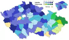 Presidential elections were held in the Czech Republic in January 2013, the country's first direct election for the presidency.[1][2] No candidate received a majority of the votes in the first round on 11–12 January, so a second round runoff election was held on 25–26 January. Nine individuals secured enough signatures or support of parliamentarians to become official candidates for the office. Miloš Zeman of the Party of Civic Rights (SPOZ) and Karel Schwarzenberg of TOP 09 qualified for the second round,[3] which was won by Zeman with 54.8% of the vote, compared to Schwarzenberg's 45.2%.[4][5] Zeman assumed office in March 2013 after being sworn in.