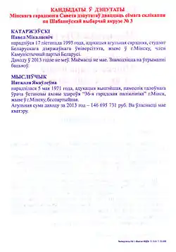 - Сведения о выдвижении кандидатов в депутаты местных Советов депутатов (in Russian - Information on candidate nomination for Local Councils deputies)