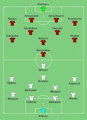 For Algeria's goal, television replays showed that Akinfeev had a green laser light shining in his face during the play.[21] After the match the Algerian Football Federation was fined 50,000 CHF by FIFA for the use of laser pointers, a prohibited item in the stadium according to FIFA Stadium Safety and Security Regulations,[22] and other violations of the rules by Algerian fans.[23]