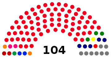 SWAPO announced a gender equality system where women would fill half of their seats in parliament. The party also embraced what it called a "zebra system", whereby if a minister was a woman, the deputy minister would be a man, and vice versa. Because there were more male SWAPO MPs than female MPs, SWAPO put forward plans to expand parliament to remove the risk of male MPs losing their seats as a result of this gender policy.[6] These changes to the constitution were approved a month prior to the election against the votes of opposition parties, as SWAPO had a two-thirds majority in Parliament.[7] Since then, instead of 78 seats (72 elected, 6 appointed) there 104 seats in the National Assembly (96 elected, 8 appointed).[8]
