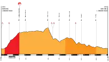 | Denbies Wine Estate (2nd Passage)[9] | 121.8 km (75.7 mi) | Cat 2 | 2.5 km (1.6 mi) | 137 m (449 ft) | 5.5% | 13.1% |