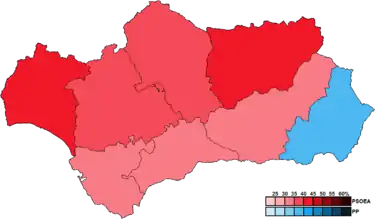 ![]() Constituency results map for the Parliament of Andalusia | ||||||||||||||||||||||||||||||||||||||||||||||||||||||||||||||||||||||||||||||||||