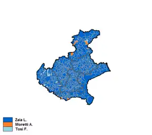 | Laura Coletti | 19,914 | 0.90 | – | The Other Veneto | 13,997 | 0.76 | – | ||