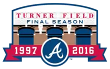 The 2016 season was the Braves' final season at Turner Field, before moving to their new home at SunTrust Park. The stadium was originally built as a venue for the 1996 Summer Olympics before being converted for use by the Braves for the 1997 season. The team scheduled a number of special events and limited-edition giveaways in honor of its final season at Turner and the players wore a commemorative sleeve patch on their uniforms for the entire season. The patch showed an outline of the stadium with the words "Turner Field; Final Season, 1997–2016".[2][3]