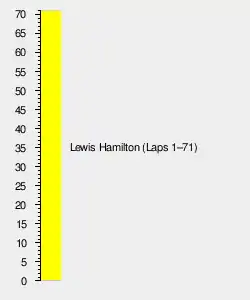 The race restarted again and Hamilton went on to win the race from Championship leader Nico Rosberg and Max Verstappen.[7]