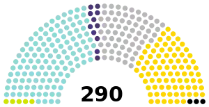 | Religious minorities (reserved seats) | 5[18] | 1.73% | 5 / 290 | ||