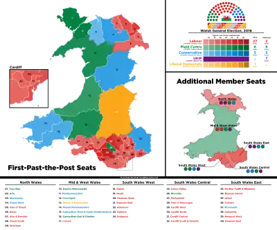 The election was held on the same day as elections for the Scottish Parliament, the Northern Ireland Assembly, the Mayor and Assembly of London and in numerous local authorities in England. The by-election for the Westminster seat of Ogmore was also held on the same day. This election and elections to the other devolved chambers were delayed by a year from 2015 to 2016 as a result of the Fixed-term Parliaments Act 2011.[1] Elections to the Welsh Assembly have now also been permanently moved to a five-year cycle under the Wales Act 2014.