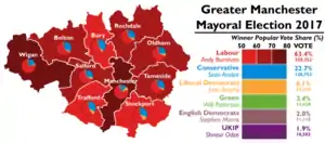 ![]() Results of the 2017 Greater Manchester mayoral election by borough | |||||||||||||||||||||