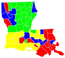 ![]() Red parishes won by Schroeder. Blue parishes won by Edwards. | |||||||||||||||||