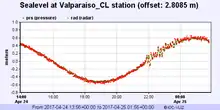 The National Office of Emergency of the Interior Ministry declared a tsunami warning for the coasts of the Valparaíso and O'Higgins regions.[31] A few minutes later, the National Tsunami Service of Chile (SNAM, by its initials in Spanish), dependent on the Hydrographic and Oceanographic Service of the Chilean Navy (SHOA, by its initials in Spanish), ruled out the probability of a tsunami off the coast of Chile.[32] However, if the tsunami was generated, according to the Pacific Tsunami Warning Center (PTWC) the maximum heights were; 16 cm in the city of Valparaíso and 10 cm in the commune of Quintero.[33]