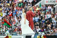 ![]() Aida Garifullina and Robbie Williams performing on stage. | |