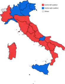| Giorgio Gori | PD | 1,633,367 | 29.1 | Centre-left | 1,414,674 | 27.0 | –10.3 pp | 18 | –3 | ||
