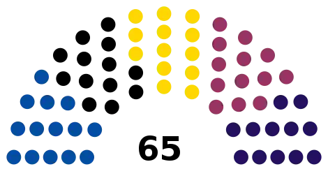 All 65 seats in the Assembly 33 seats needed for a majority | |||||||||||||||||||||||||||||||||||||||||||||||||||||||||||||||||||||||