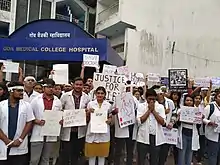 On 11 June 2019, following the assault of two junior doctors at Nil Ratan Sircar Medical College and Hospital (NRSMCH) the previous night, junior doctors in Kolkata began protesting and demanded that the Chief Minister of West Bengal, Mamata Banerjee, should intervene and provide adequate security to medical professionals. The protests caused a collapse of healthcare facilities in the state.[1][2][3][4][5][6][7][8][9][10][11] Protests continued through 13 June, despite attempts at mediation, resulting in the chief minister issuing an ultimatum to the protesting doctors.[12][13][14][15] The doctors ignored the ultimatum, asking the government to meet their demands for security[16] and for the chief minister to give them a public apology.[17]