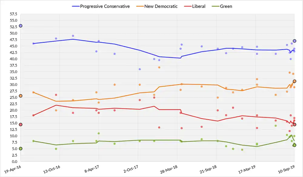 - "Progressive Conservatives Remain Ahead of NDP in Manitoba". September 10, 2019.