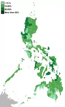 ![]() Map showing the number of winning HNP candidates if elections were done per province and city, with darker red shades denoting more candidates from HNP winning there. The winners are determined via the nationwide vote. | |||||||||||||||||||||||||||||||||||||||||||||||