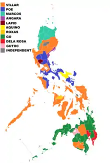 | 2 | Villar | 55.6 | Cayetano | 55.7 | Villar | 57.7 | Villar | 46 | Poe | 43 | Villar | 66.6 | Villar | 61.0 | Poe | 50.5 | Poe | 47.7 | |||||||||