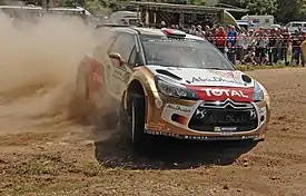 The first leg saw defending world champion Sébastien Ogier, who was the road-cleaner in Sardinia, caught out after hitting a huge rock in the morning loop. Ogier's Citroën C3 sustained serious suspension damage, forcing him and co-driver Julien Ingrassia to retire from the stage.[13] Teemu Suninen took an early lead until a spin handed the lead to Jari-Matti Latvala, who rolled his Yaris in the afternoon loop. Things went from bad to worse as the Finn went off the road in the final stage of the leg. Thierry Neuville also hit trouble as his i20 slid nose-first into a ditch, with the Hyundai's radiator being pierced in the ordeal.[14] Eventually, Dani Sordo became the overnight leader.[15]