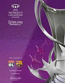 The 2019 UEFA Women's Champions League Final was the final match of the 2018–19 UEFA Women's Champions League, the 18th season of Europe's premier women's club football tournament organised by UEFA, and the 10th season since it was renamed from the UEFA Women's Cup to the UEFA Women's Champions League. This was the first time since the final is played as a single match that a host city for the Women's Champions League final was not automatically assigned by which city won the bid to host the men's Champions League final, although the same association is still allowed to host both finals by the UEFA bid regulations. It was played at the Groupama Arena in Budapest, Hungary on 18 May 2019,[6] between French side Lyon and Spanish side Barcelona.