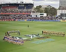 ![]() Richmond and Williamstown line up for the national anthem at the 2019 VFL Grand Final | |