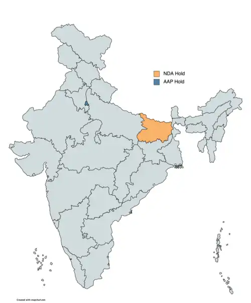 | 28 October 2020, 3 & 7 November 2020 | Bihar | Janata Dal (United) | Nitish Kumar | Bharatiya Janata Party | Nitish Kumar | ![]() | ||