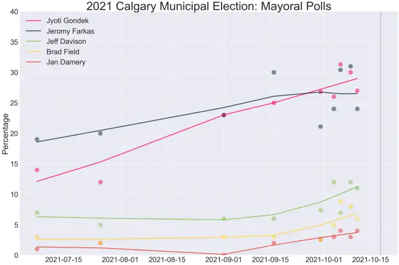 1. "New poll suggests race for mayor will go down to the wire between Gondek and Farkas". Calgary Herald. October 14, 2021. Archived from the original on October 14, 2021. Retrieved October 16, 2021.