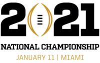 The 2021 College Football Playoff National Championship was a college football bowl game played to determine a national champion in the National Collegiate Athletic Association's Division I Football Bowl Subdivision (FBS) for the 2020 season. It was played at Hard Rock Stadium in Miami Gardens, Florida, on January 11, 2021, with kickoff at 8:15 p.m. EST and television coverage by ESPN. Aside from the all-star games scheduled to follow, it was the culminating game of the 2020–21 bowl season.