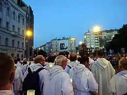 The General Secretariat of the Budapest International Eucharistic Congress has been formed, and Péter Erdő nominated its chief secretary, Kornél Fábry (priest of the Diocese of Kaposvár). The secretariat starts working in the Primate's Palace in Buda Castle, but it is going to be provided with its own headquarters in Vörösmarty Street. Eight subcommittees will support its work, responsible for the fields of theology, liturgy, arts, finances, media and event organisation. The theological committee has to define the theme of the congress, and propose motto by March 2017 for the pope to decide.[4] It was announced that COVID-19 prevention methods such as masks weren't mandatory for visitors and atteendes.[5] Due to the COVID-19 pandemic, the event originally scheduled for September 2020 was postponed for a year.[1]