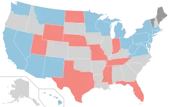 | Democratic incumbent Term-limited or retiring Democrat Republican incumbent Term-limited or retiring Republican Unknown incumbent New Progressive incumbent Nonpartisan No election | |