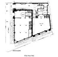 Upon completion, the corner Demarest Building had offices as well as carriage and automobile warehouses. There was one elevator each for pedestrians and vehicles.[12][16] The surrounding Peerless Building had a double-height ground-floor salesroom,[6][16][24] with a gilded ceiling and marble walls and columns.[25] The second through tenth floors respectively contained vehicle stock, new cars, used cars, an inspection studio, an upholstery department, repair shops, more repair shops, a painting department, and a blacksmith shop.[20] The Peerless Building had two vehicle elevators, one passenger elevator, and a turntable.[11][25]