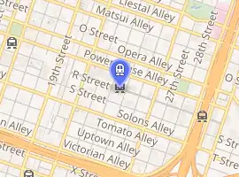 23rd Street is a side platformed Sacramento RT light rail station in the Midtown neighborhood of Sacramento, California, United States. The station was opened on September 5, 1987,[1] and is operated by the Sacramento Regional Transit District. It is served by the Gold Line. The station is located at the intersection of 23rd and R Streets, and is in the Central City Fare Zone. It also serves a portion of the Richmond Grove neighborhood.