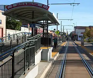 25th & Welton station is an island platformed RTD light rail station in Denver, Colorado, United States. Originally operating as part of the D Line, the station was opened on October 8, 1994, and is operated by the Regional Transportation District.[3][4] Located in the Five Points neighborhood, it is the stop closest to the Blair-Caldwell African American Research Library. The January 14, 2018 service changes introduced the L Line, which now serves this station in place of the D Line.[5]