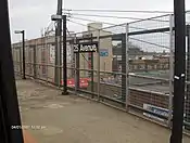 This elevated station has three tracks and two side platforms. The center express track is not normally used. This station has four stairs to the street and one from the mezzanine to each platform.
