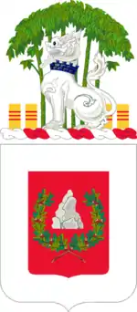 - The bamboo grove from the coat of arms of the Republic of Vietnam represents Vietnam campaign service and together with the four billets (heraldic bricks) in colors suggested by the flag of the Republic of Vietnam refers to the battalion's five Vietnam decorations (4 Meritorious Unit Commendations, VIETNAM, and Republic of Vietnam Civil Actions Medal).