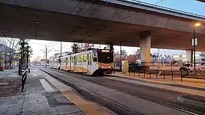29th Street is a side platformed Sacramento RT light rail station in the Midtown neighborhood of Sacramento, California, United States. The station was opened on September 5, 1987, and is operated by the Sacramento Regional Transit District.[1] It is served by the Gold Line. The station is located on R Street between 29th and 30th Streets,[2] below the overpass of Business Loop 80 (Capital City Freeway), and is the easternmost station in the Central City Fare Zone. Portions of the Poverty Ridge neighborhood are also accessible from the station.