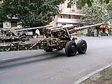 The 2A36 Giatsint-B (Russian: Гиацинт; "Hyacinth") is a Soviet/Russian towed 152 mm field gun which entered service in 1975. The 2A36 is designed to suppress and destroy enemy manpower and equipment. It is also suitable for counter-battery fire. The gun can be used in various weather conditions and has been tested in temperatures ranging from −50 °C to 50 °C. The gun is in use in Russia, a number of CIS countries, Finland, and Iraq. It was also used by the Lebanese Army to fire into the heavily fortified Nahr el-Bared refugee camp during the conflict there.[1] Lebanon possibly acquired some in a major arms shipment from Iraq shortly before the end of the Lebanese Civil War.