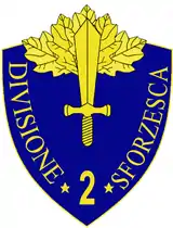 The 2nd Infantry Division "Sforzesca" (Italian: 2ª Divisione di fanteria "Sforzesca") was a infantry division of the Royal Italian Army during World War II. The Sforzesca was classified as a mountain infantry division, which meant that the division's artillery was moved by pack mules instead of the horse-drawn carriages of line infantry divisions. Italy's real mountain warfare divisions were the six alpine divisions manned by Alpini mountain troops. The Division, with the exception of the 53rd Infantry Regiment based in Biella, was based in Novara and recruited its troops primarily from northern Piedmont. The division was named for the Battle of Sforzesca fought during the First Italian War of Independence in 1849.[1]