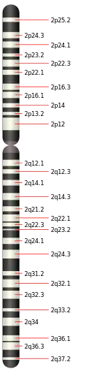 2p15-16.1 microdeletion is an extremely rare genetic disorder caused by a small deletion in the short arm of human chromosome 2. First described in two patients in 2007,[1] by 2013 only 21 people have been reported as having the disorder in the medical literature.[2][3][4][5]