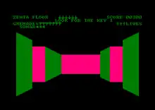 The three floors are named Zeta, Alpha & Delta. The player starts on Zeta floor. The keys and the bomb can be on any floor. When they are wandering around the maze they may occasionally see a key with a higher number than the one they are looking for. The player can only pick up the keys in numerical order. To change floors they will need to use lifts. A red coloured lift will take the player down, while a blue coloured lift will take them up. (Taken from the inlay text[3])