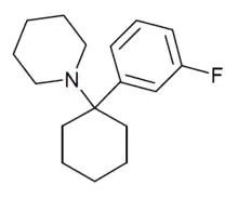 3-Fluoro-PCP (3'-F-PCP, 3F-PCP) is a recreational designer drug from the arylcyclohexylamine family, with dissociative effects.[1][2][3] It was first identified in Slovenia in October 2020,[4] and was made illegal in Hungary in April 2021.[5]