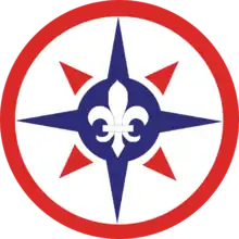 The 316th's unit patch is a white disc within a 1/8-inch red border, 2 inches in diameter. The colors red, white and blue represent the support rendered by the command of combat service support organizations. The blue compass represents the four cardinal points and red represents the secondary points of the compass indicating worldwide deployability and readiness of the 316th ESC. The center of the patch bears a white fleur-de lis, representing the lily, the state flower of Tennessee, and the City of Knoxville, the original home of the 316th Logistical Command.