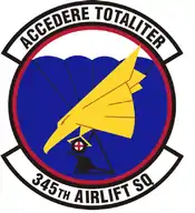 | 345th Airlift Squadron emblem (approved 24 May 1957)[1] | ![]() |