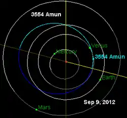 ![]() Orbit diagram of asteroid Amun with location as of September 9, 2012 | |